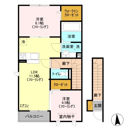 洋室 6.1 畳 洋室 4.5 畳 LDK 11.5 畳 |