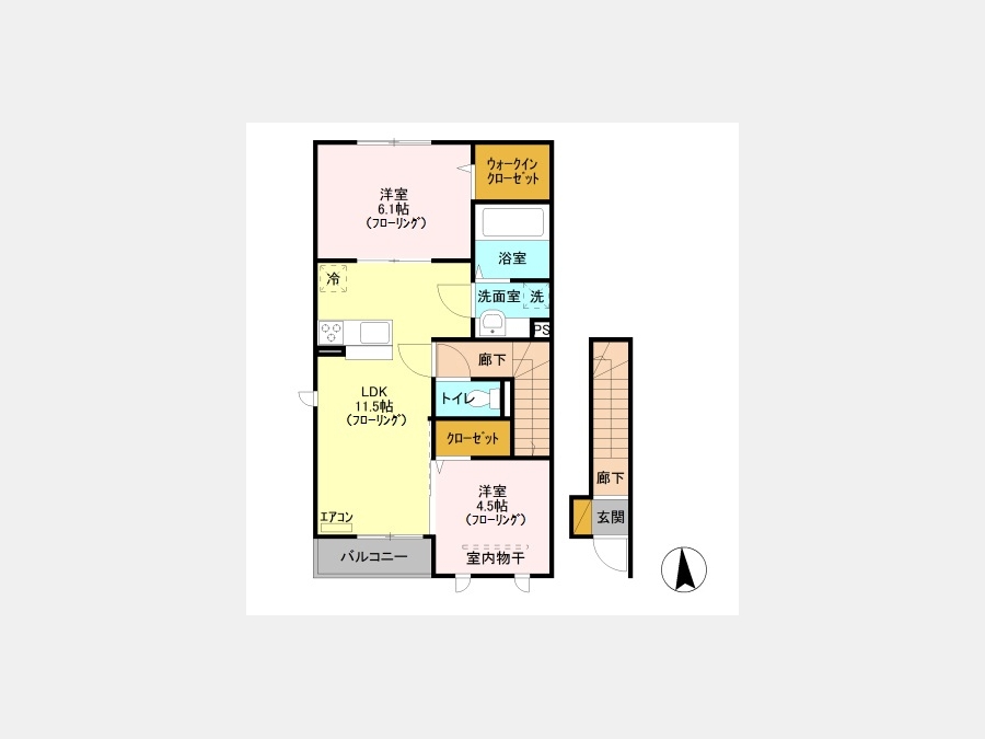 洋室 6.1 畳 洋室 4.5 畳 LDK 11.5 畳 |