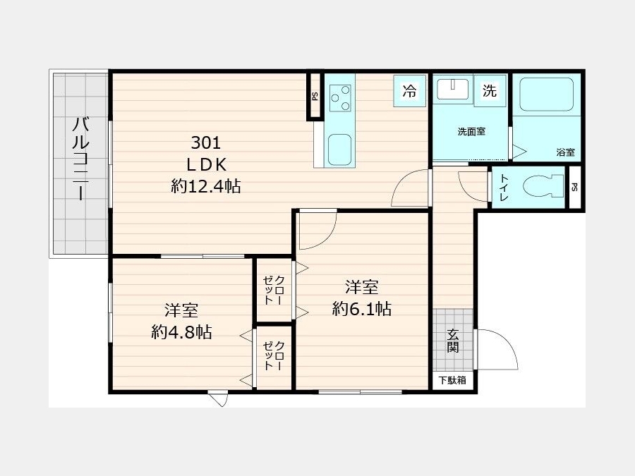 LDK 12.4 畳 1 室 洋室 4.8 畳 1 室 洋室 6.1 畳 1 室 |