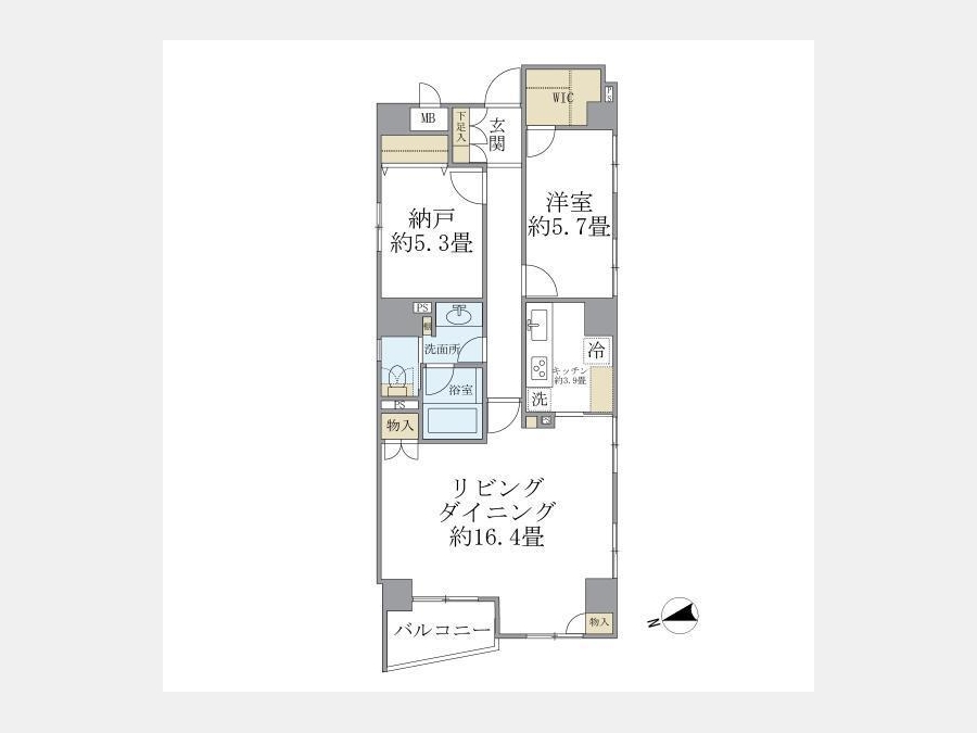 洋室 5.7 畳 S 5.3 畳 LD 16.4 畳 K 3.9 畳 |