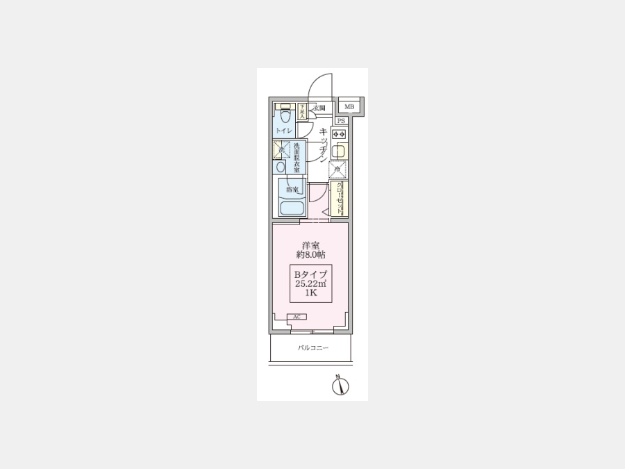 | 敷金/礼金 | 1ヶ月 / 1ヶ月 | 専有面積 | 25.22m² |