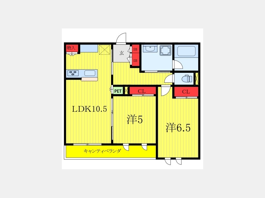 洋室 6.5 畳 洋室 5 畳 LDK 10.5 畳 |