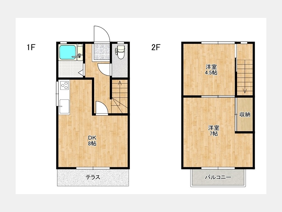 DK 8 畳 1 階 洋室 7 畳 2 階 洋室 4.5 畳 2 階 |