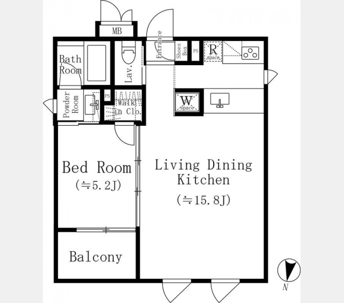 洋室 5.2 畳 1 室 LDK 15.8 畳 1 室 |