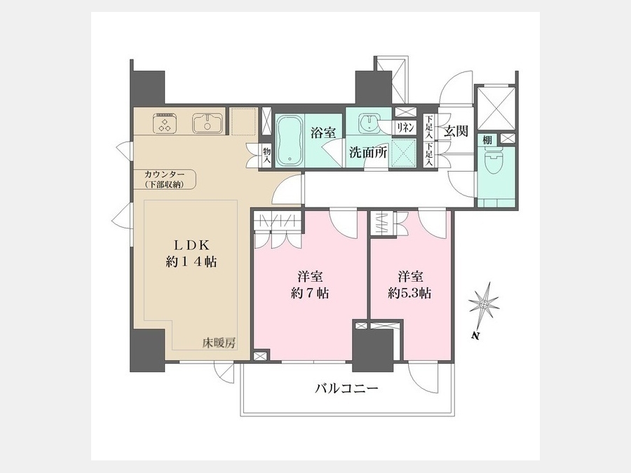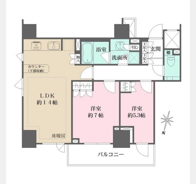 洋室 7 畳 洋室 5.3 畳 LDK 14 畳 |