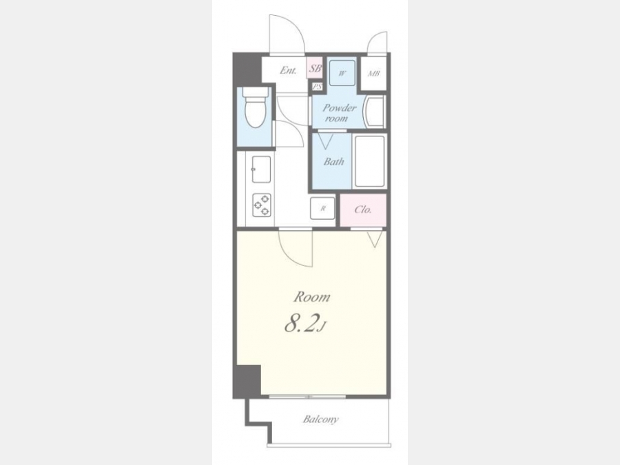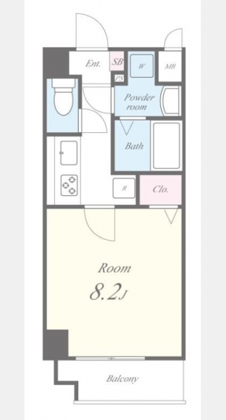 洋室 8.2 畳 1 室 K 1 室 |