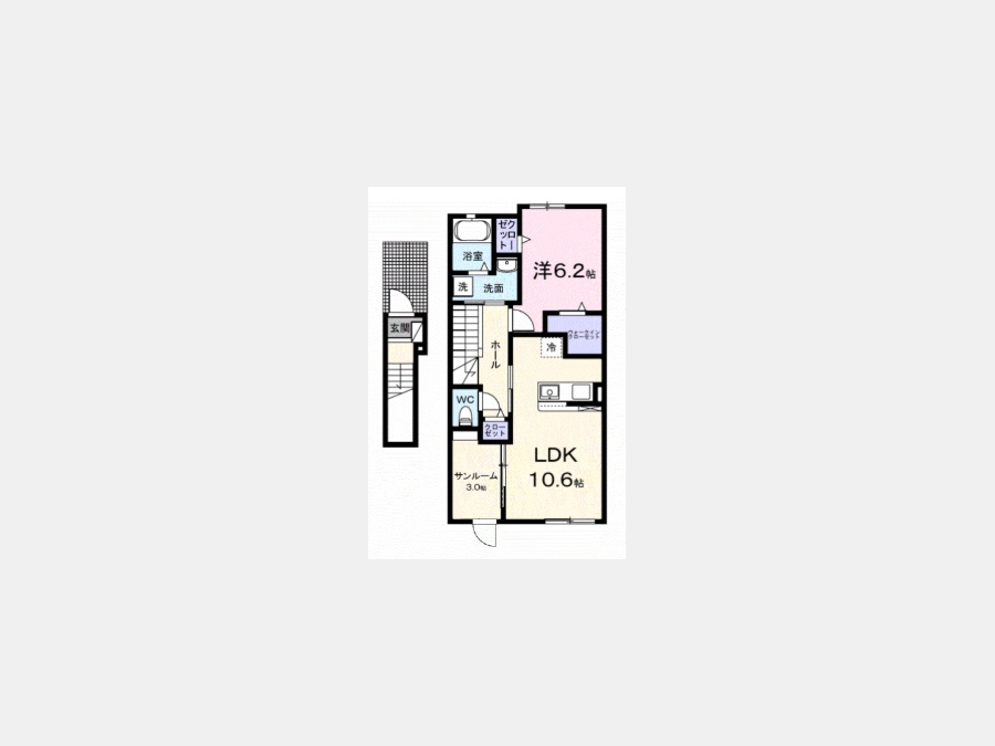 洋室 6.2 畳 1 室 LDK 10.6 畳 1 室 サンルーム3帖 |