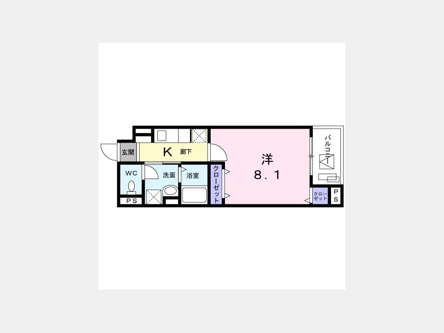 洋室 8.1 畳 1 室 K 1 室 |