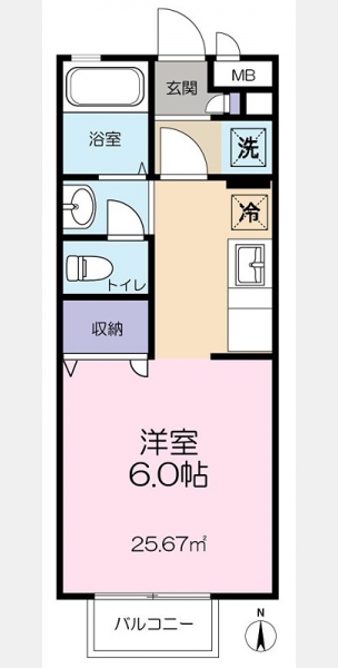 | 敷金/礼金 | 1ヶ月 / 1ヶ月 | 専有面積 | 25.67m² |