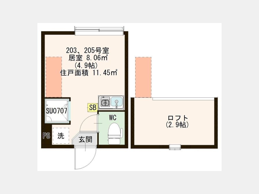 | 専有面積 | 11.45m² | バルコニー面積 | |
