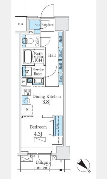 | 間取り | 1DK | 階建 | 2階/9階建 |
