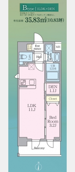 | 専有面積 | 35.83m² | バルコニー面積 | |