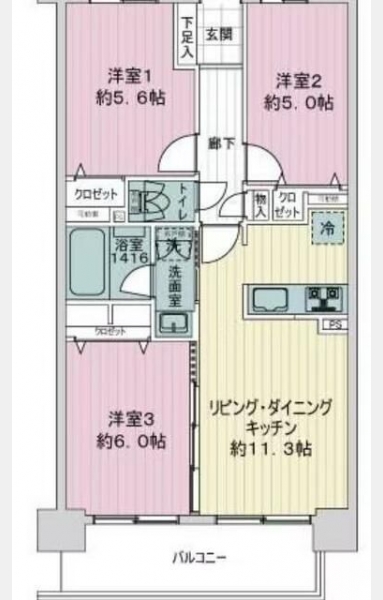 洋室 6 畳 洋室 5.6 畳 洋室 5 畳 LDK 11.3 畳 |