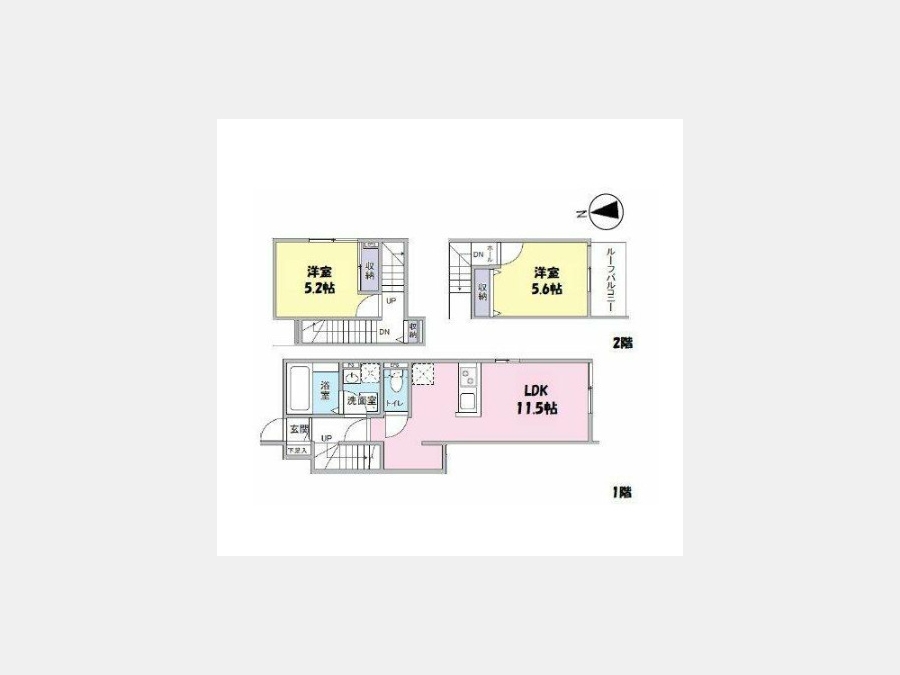 洋室 5.6 畳 LDK 11.5 畳 洋室 5.2 畳 |