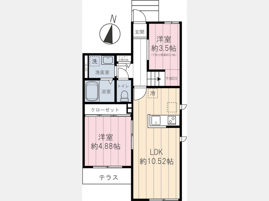 LDK 10.5 畳 1 階 1 室 洋室 4.8 畳 1 階 1 室 洋室 3.5 畳 1 階 1 室 |