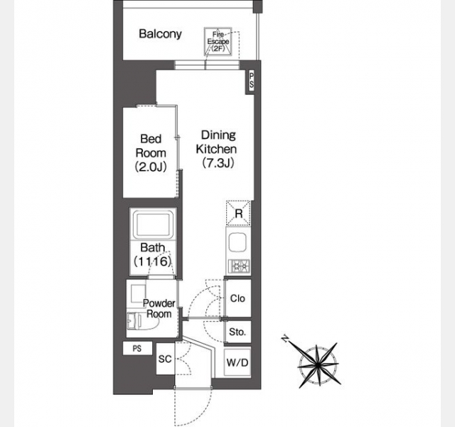 | 間取り | 1DK | 階建 | 2階/10階建 |