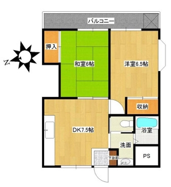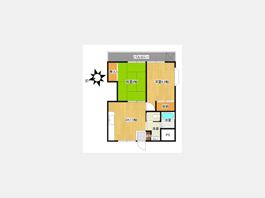 和室 6 畳 洋室 6.5 畳 DK 7.5 畳 |