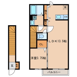 | 間取り | 1LDK | 階建 | 2階/2階建 |