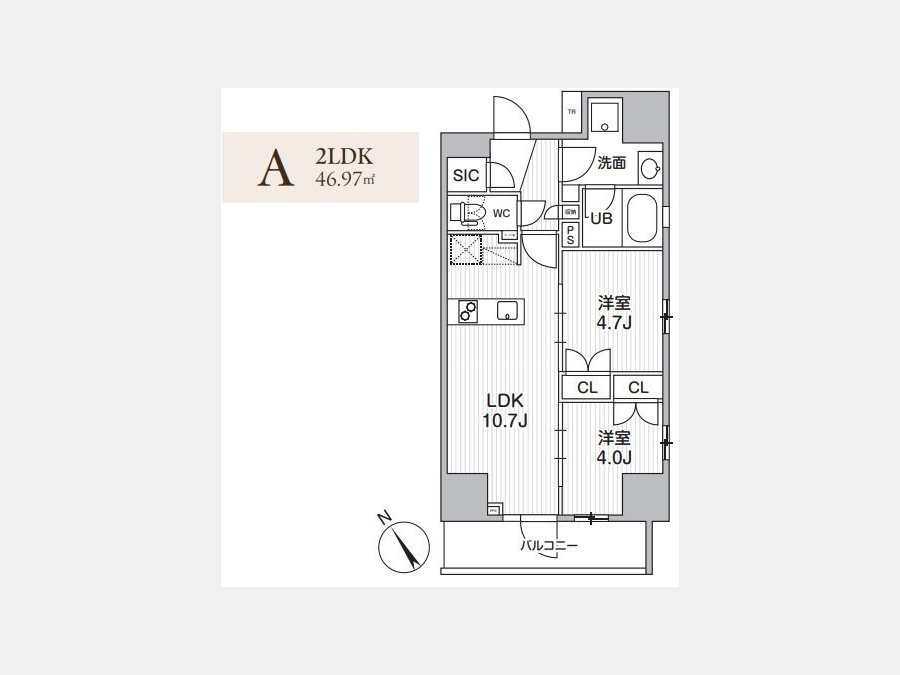 | 専有面積 | 46.97m² | バルコニー面積 | |