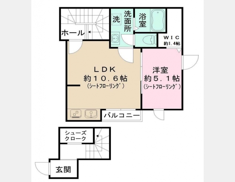 | 間取り | 1LDK | 階建 | 2階/2階建 |