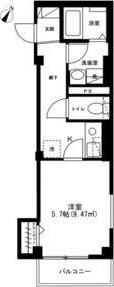 洋室 5.7 畳 1 室 K 1 室 |