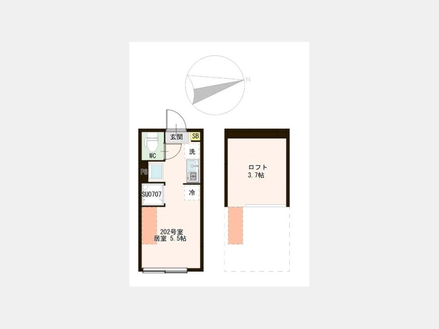 洋室 5.5 畳 1 室 ロフト3.7帖 |