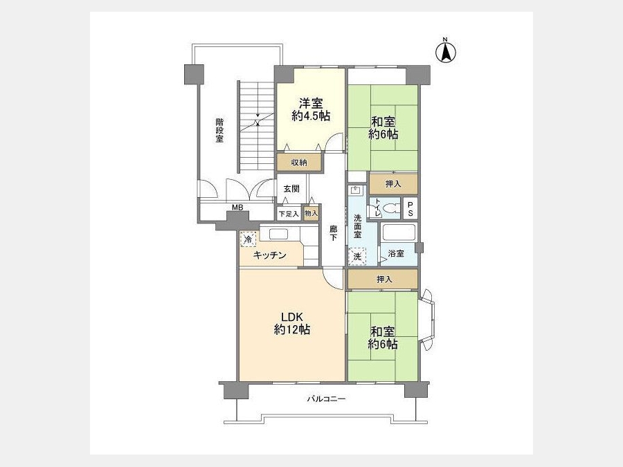 LDK 12 畳 1 室 洋室 4.5 畳 1 室 和室 6 畳 1 室 和室 6 畳 1 室 |