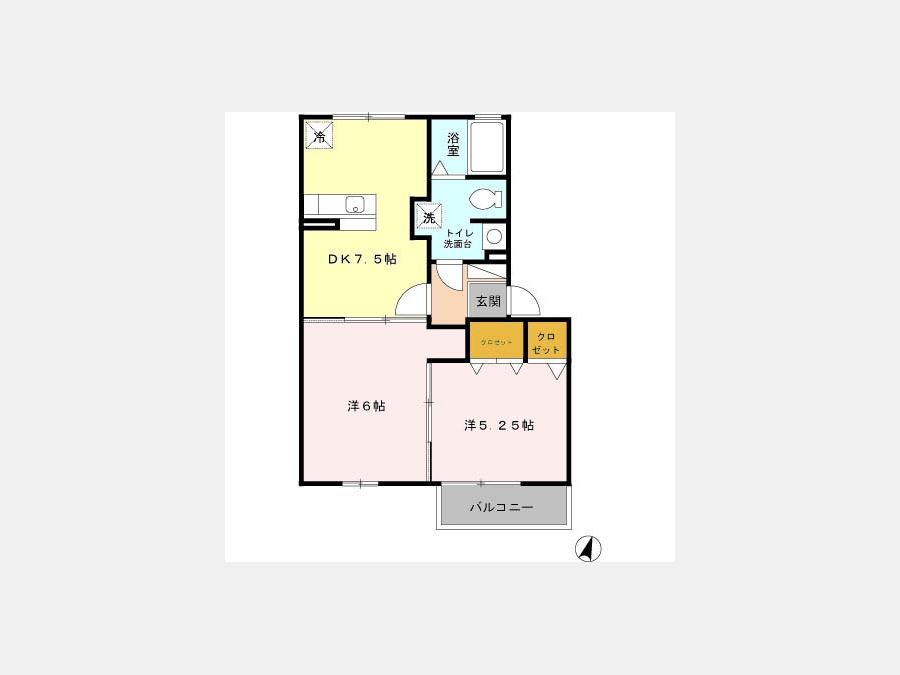 洋室 5.2 畳 洋室 6 畳 DK 7.5 畳 |