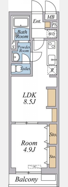 LDK 8.5 畳 1 室 洋室 4.9 畳 1 室 |