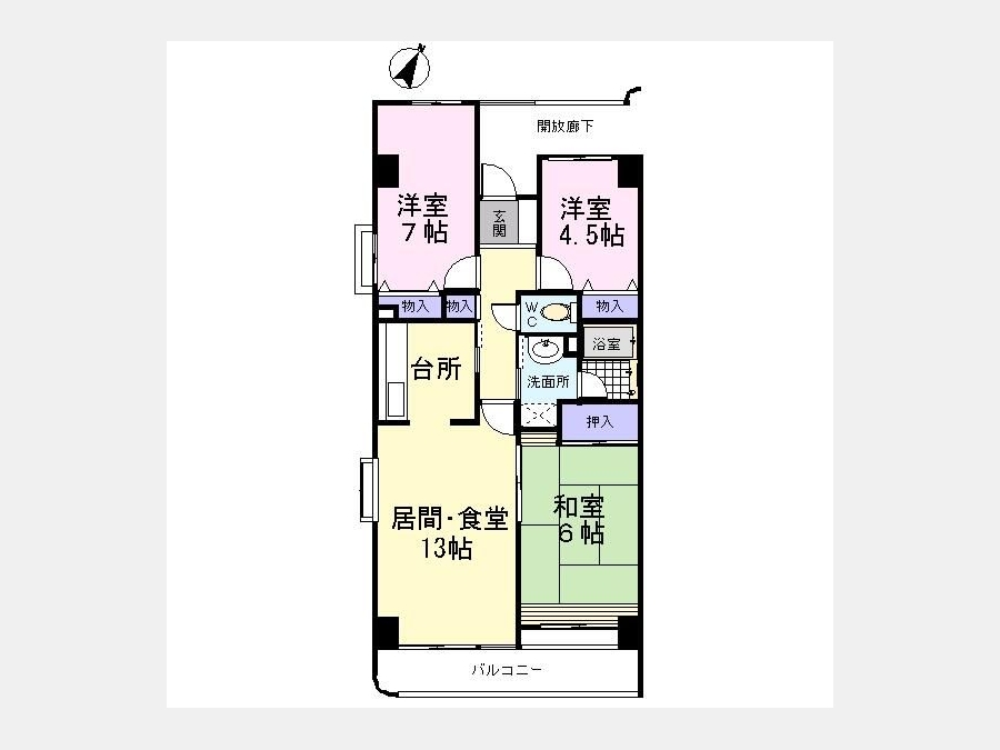 和室 6 畳 洋室 7 畳 LDK 13 畳 洋室 4.5 畳 |