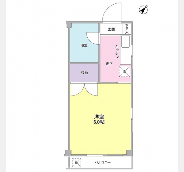 洋室 6 畳 1 室 K 1 室 |