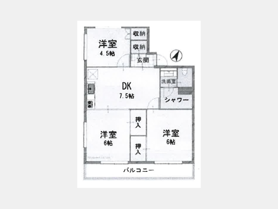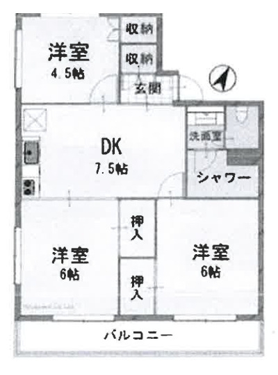 洋室 6 畳 洋室 6 畳 洋室 4.5 畳 DK 7.5 畳 |