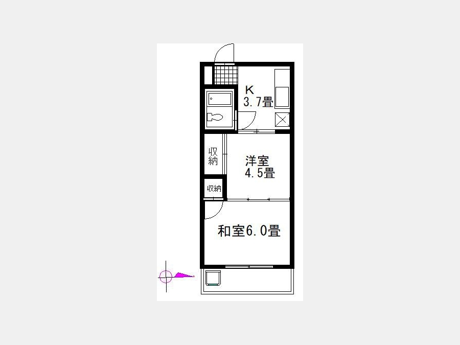1 室 洋室 4.5 畳 1 室 K 3.7 畳 1 室 |