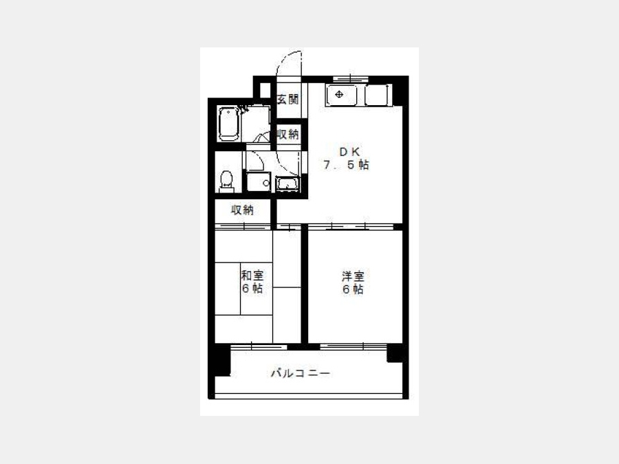 和室 6 畳 1 室 洋室 6 畳 1 室 DK 7.5 畳 1 室 |