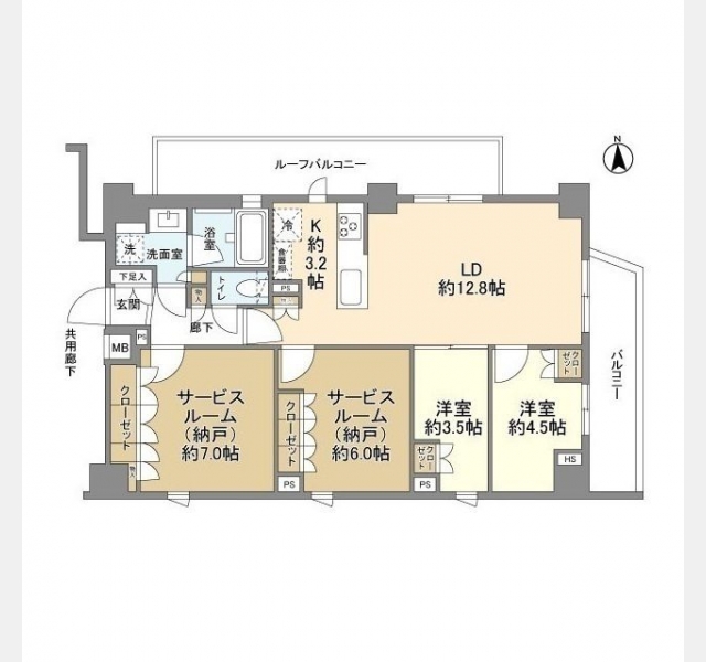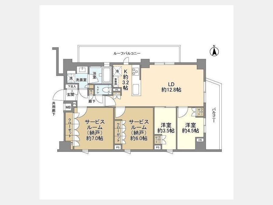 LD 12.8 畳 1 室 洋室 3.5 畳 1 室 洋室 4.5 畳 1 室 S 7 畳 1 室 S 6 畳 1 室 |