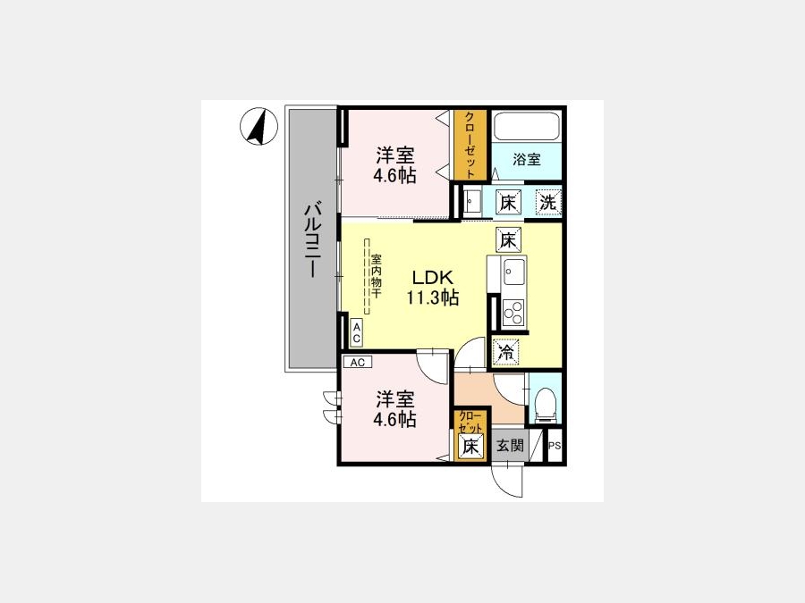 LDK 11.3 畳 洋室 4.6 畳 洋室 4.6 畳 |