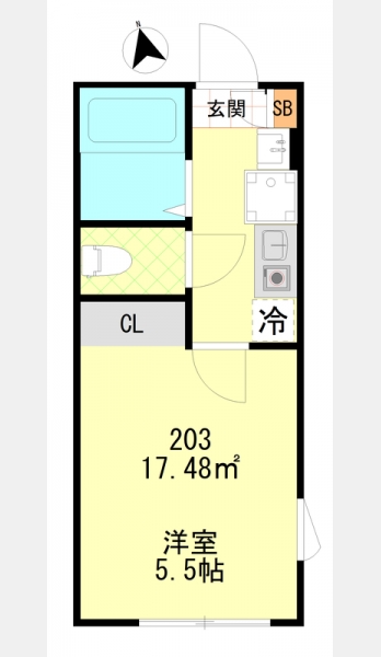 | 専有面積 | 17.48m² | バルコニー面積 | |