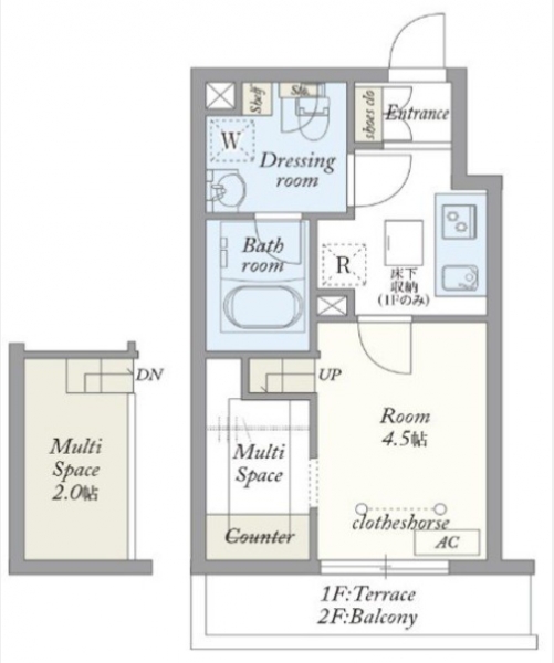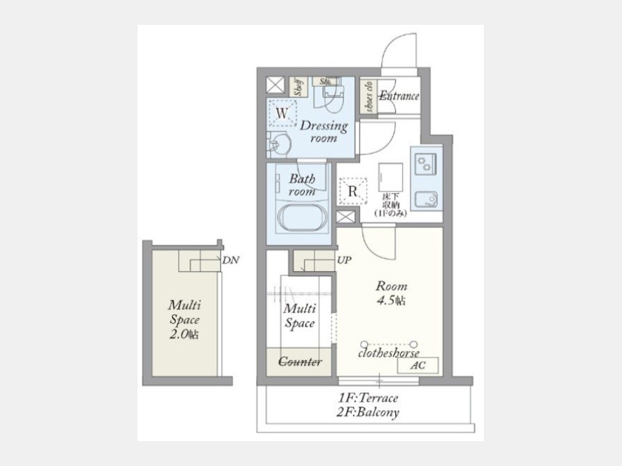 | 設備・条件 | 1階、システムキッチン、バス・トイレ別、温水洗浄便座、浴室乾燥機、追い焚き、室内洗濯機置き場、フローリング、エアコン、即入居可、敷金なし、保証人不要、インターネット対応、オートロック、TVドアホン、防犯カメラ、宅配ボックス、駐輪場、都市ガス、低層マンション、デザイナーズ | ||