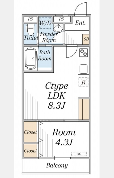LDK 8.3 畳 1 室 洋室 4.3 畳 1 室 |