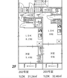 | 間取り | 1LDK | 階建 | 2階/3階建 |