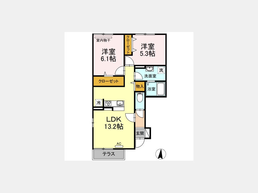 LDK 13.2 畳 洋室 6.1 畳 洋室 5.3 畳 |