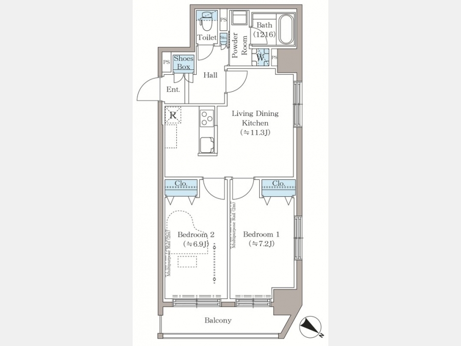 洋室 7.2 畳 洋室 6.9 畳 LDK 11.3 畳 |