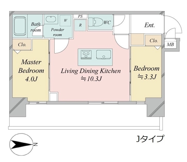 洋室 4 畳 洋室 3.3 畳 LDK 10.3 畳 |