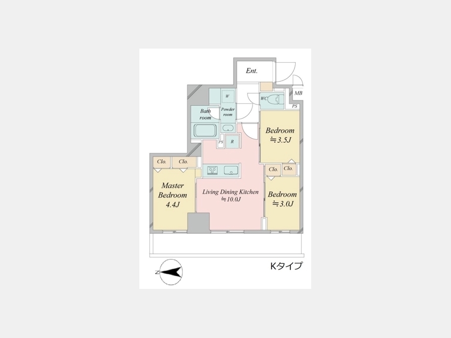 洋室 4.4 畳 洋室 3.5 畳 洋室 3 畳 LDK 10 畳 |