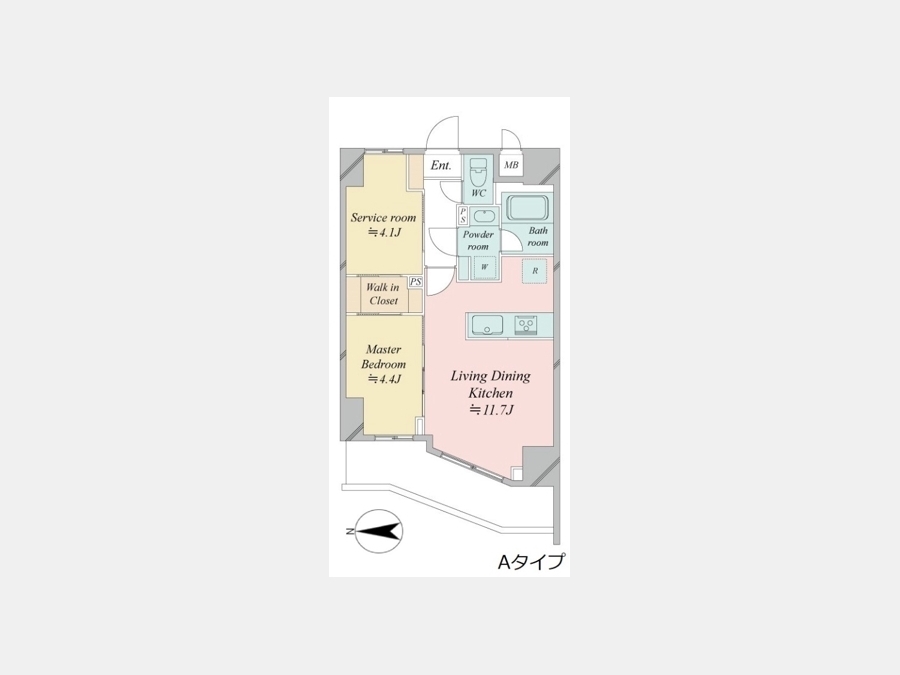 洋室 4.4 畳 S 4.1 畳 LDK 11.7 畳 |