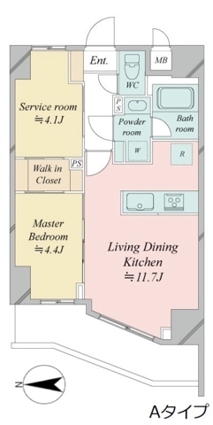 洋室 4.4 畳 S 4.1 畳 LDK 11.7 畳 |
