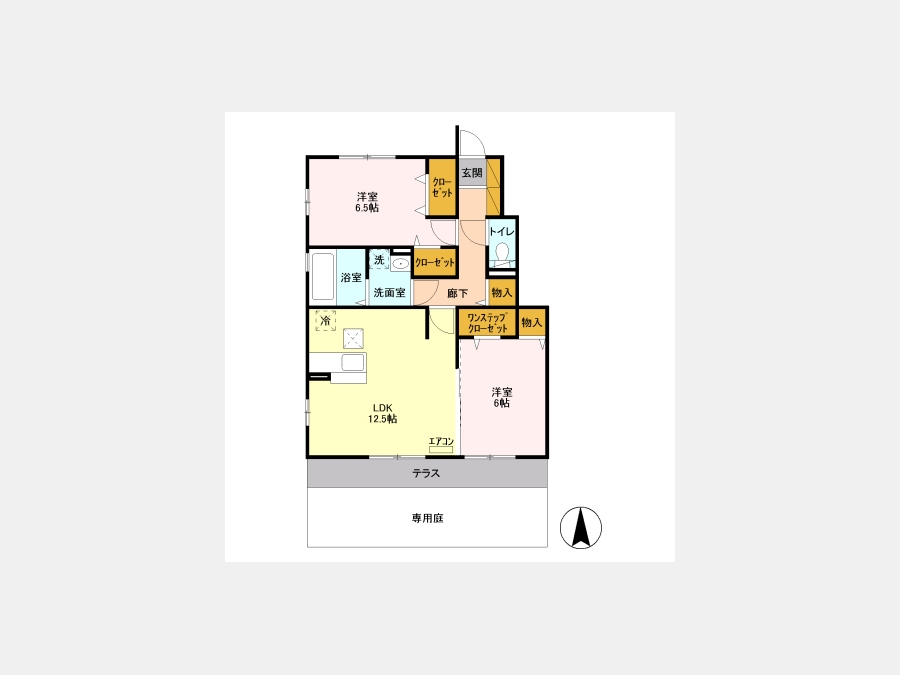 洋室 6 畳 洋室 6.5 畳 LDK 12.5 畳 |