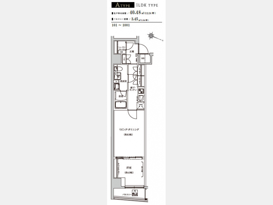 | 専有面積 | 40.48m² | バルコニー面積 | |