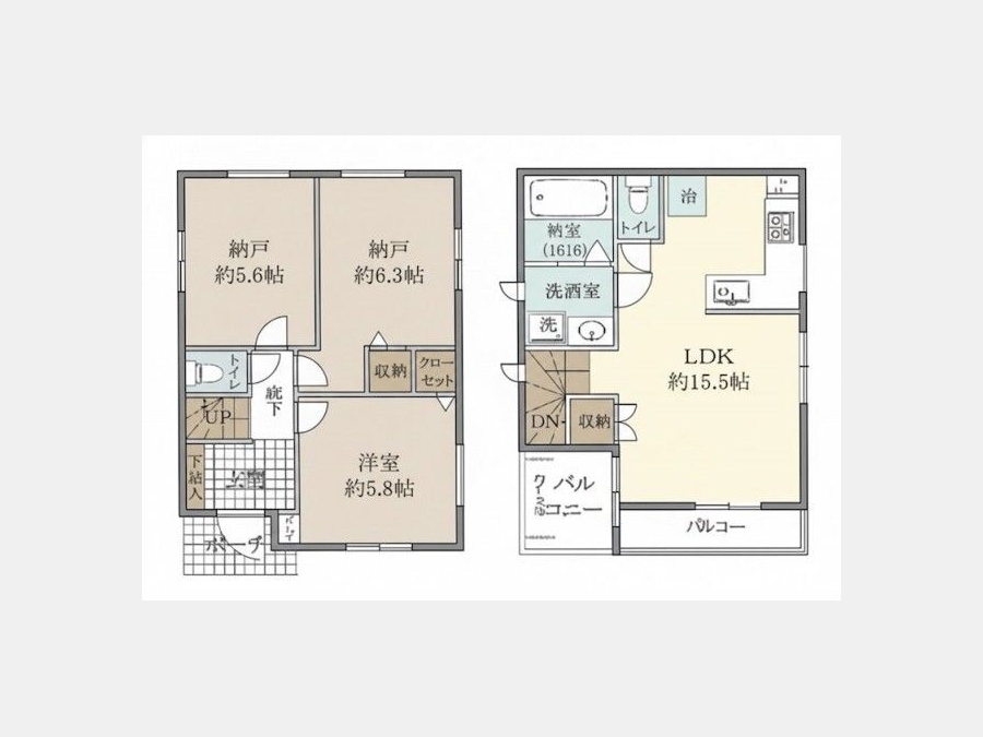 LDK 15.5 畳 洋室 6.3 畳 洋室 5.8 畳 洋室 5.6 畳 |