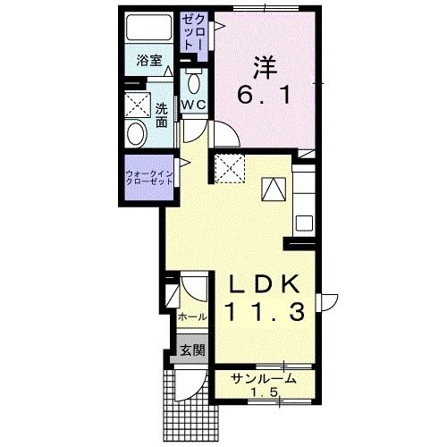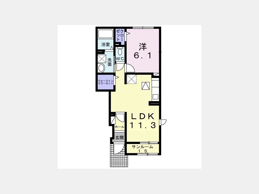 LDK 11.3 畳 1 室 洋室 6.1 畳 1 室 サンルーム1.5帖 |